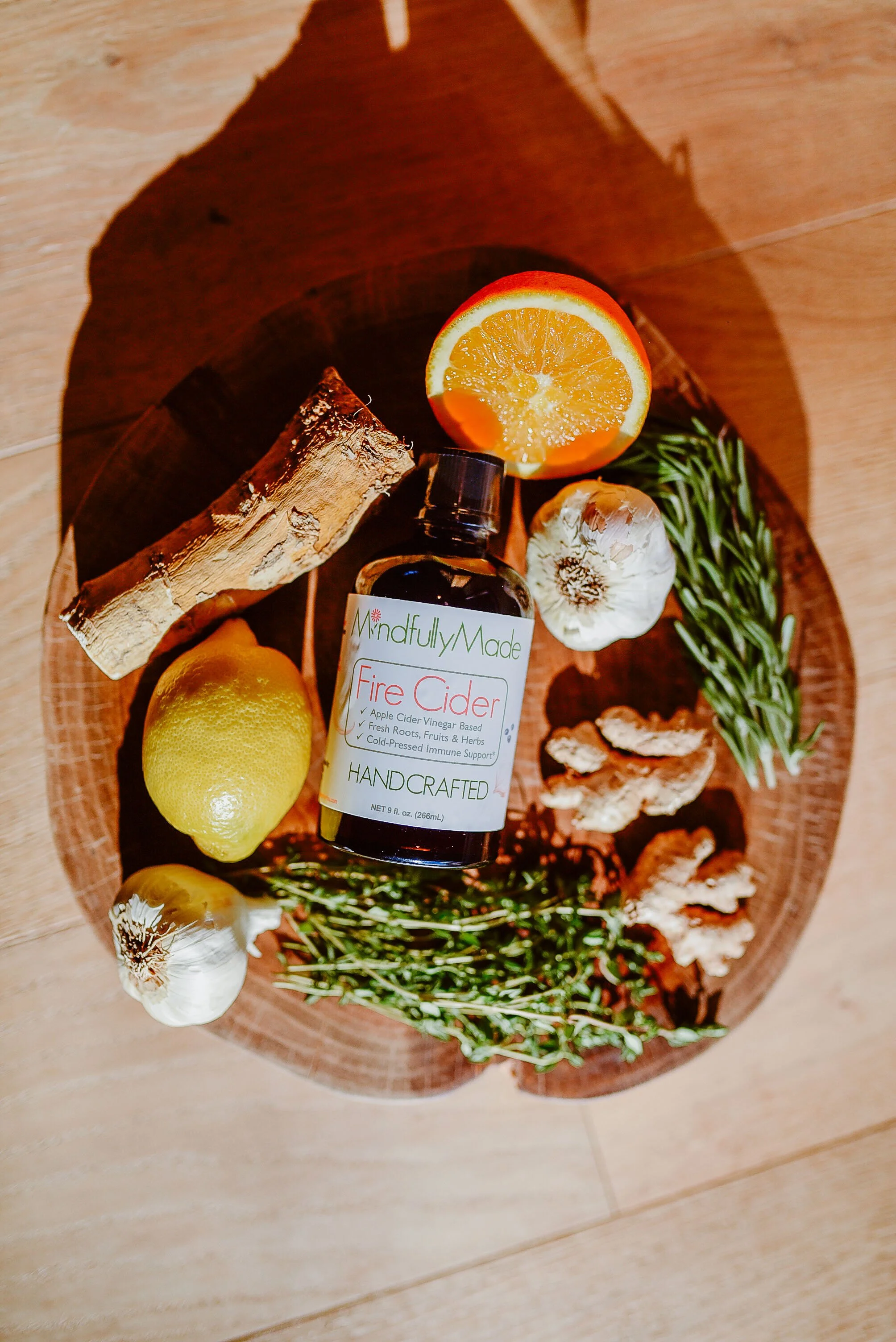 Fire Cider is a traditional remedy loaded with immune & respiratory supporting, anti-inflammatory, digestive & antiviral plants which have infused in microbiome supporting raw apple cider vinegar for weeks! Learn more.